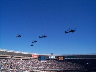 Stadium at sunset Friday evening. Note the Secret Service agents on
