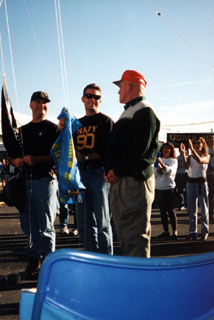 Fuglestad with 5 month old daughter Megan Ann, USS BEATARMY's